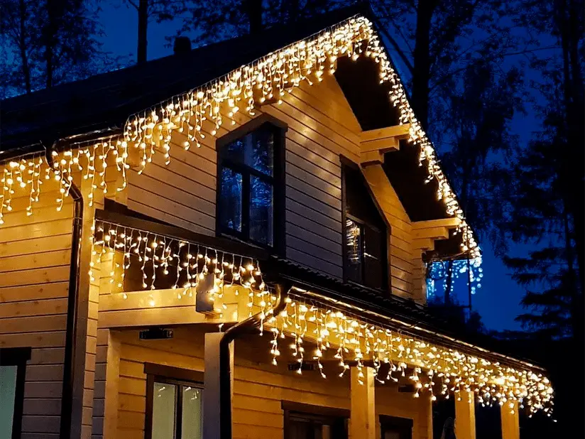 Украшение: мерцающая бахрома теплого света