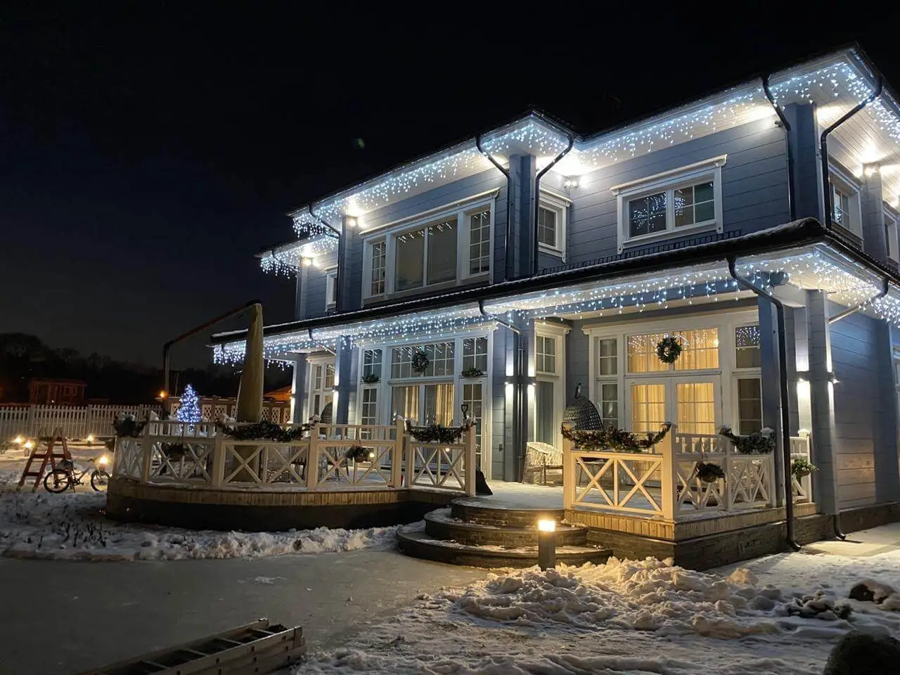 Украшение: бахрома белого холодного света