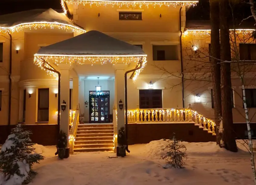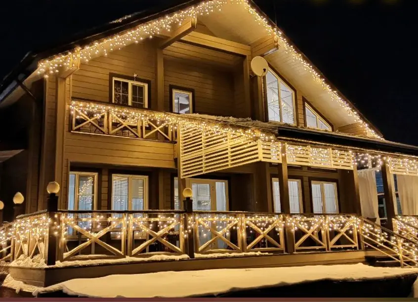 Украшение: статичная бахрома теплого белого света